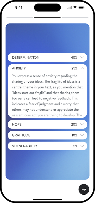 I just wanted to say I seriously love this app. When I first discovered Mindsera, I was completely obsessed. As an avid journaler, I’ve tested everything out there, but nothing came close to what you’ve created. The analysis feature is mind-blowing. It’s precise… and genuinely useful.